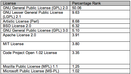 下面是开源license的一个比例(时间:2009年7月),仅供参考: