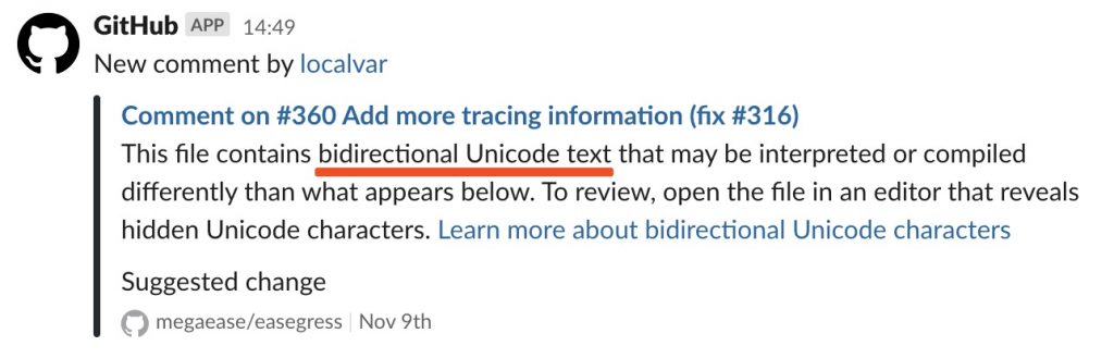 然后,Github官方博客中还给了一个安全问题 CVE-2021-42574 ——